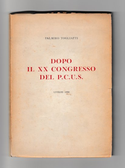 Brossura (cm 22x15,5) pag. 158 lievi tracce di polvere sulla copertina. -- Indice: La via italiana verso il socialismo. Le nuove prospettive aperte ai popoli dall'affermarsi di un sistema mondiale socialista. Nove domande sullo stalinismo. La lotta per la via italiana verso il socialismo. Il superamento del culto della personalità e delle sue conseguenze. Dichiarazione di Togliatti sulla risoluzione del C. C. del P.C.U.S.