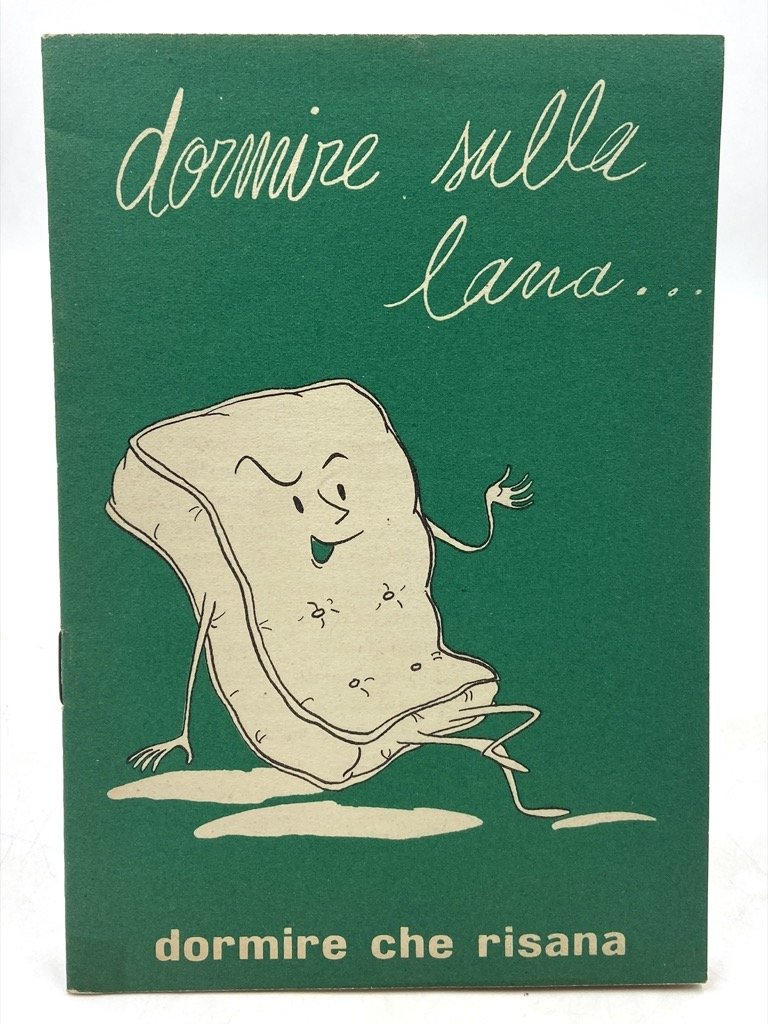Spillato, cm 17 x 11.5, pp (16 ) incluse copertine, con illustrazioni in bicromia nero e verde. Ottimo stato. Uno degli opuscoli realizzati dalla sezione italiana del Segretariato Internazionale della Lana attorno alla metà degli anni '50 per promuovere l'utilizzo del filato nella moda e in altri campi. L’IWS, International Wool Secretariat, fu fondato a Londra nel 1936 e raccoglieva i principali produttori di lana; nel 1964 l’IWS lanciò il marchio Woolmark, disegnato da Franco Grignani sotto lo pseudonimo di «Franco Saroglia». Questo fascicoletto promuove i materassi di lana ed è illustrato da vignette firmate DallAglio.