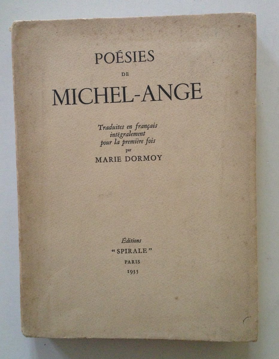DORMOY M. TRADUTTORE POESIES DE MICHEL ANGE PARIS SPIRALE 1935