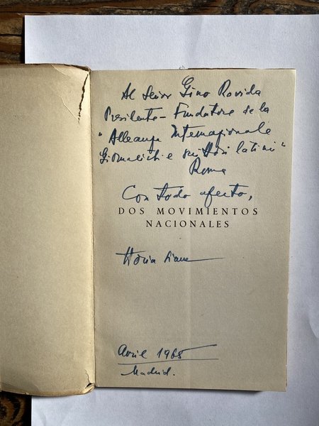 Dedica di Horia Sima all'occhiello firmata e datata Avril 1968 Madrid Tracce d'uso alla brossura Per il resto ottimo stato
