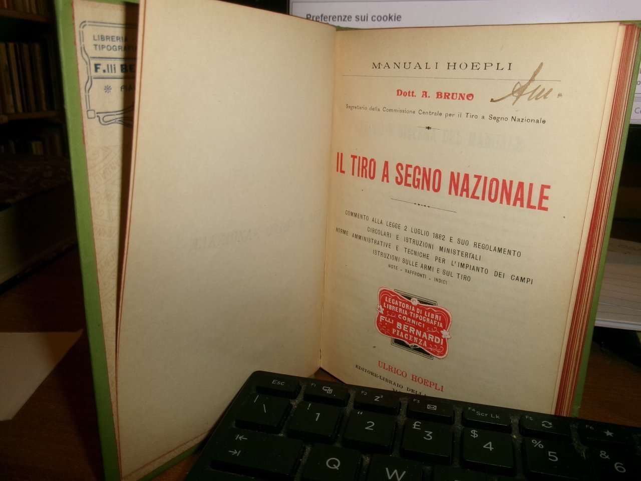 Dott. A. BRUNO. IL TIRO a SEGNO NAZIONALE. Milano, Ulrico Hoepli, 1909. In-16°, tela edit. con tagli in rosso. 335 pp. + 64 pp. (catalogo Hoepli). Neg. Hoepli mob. 19