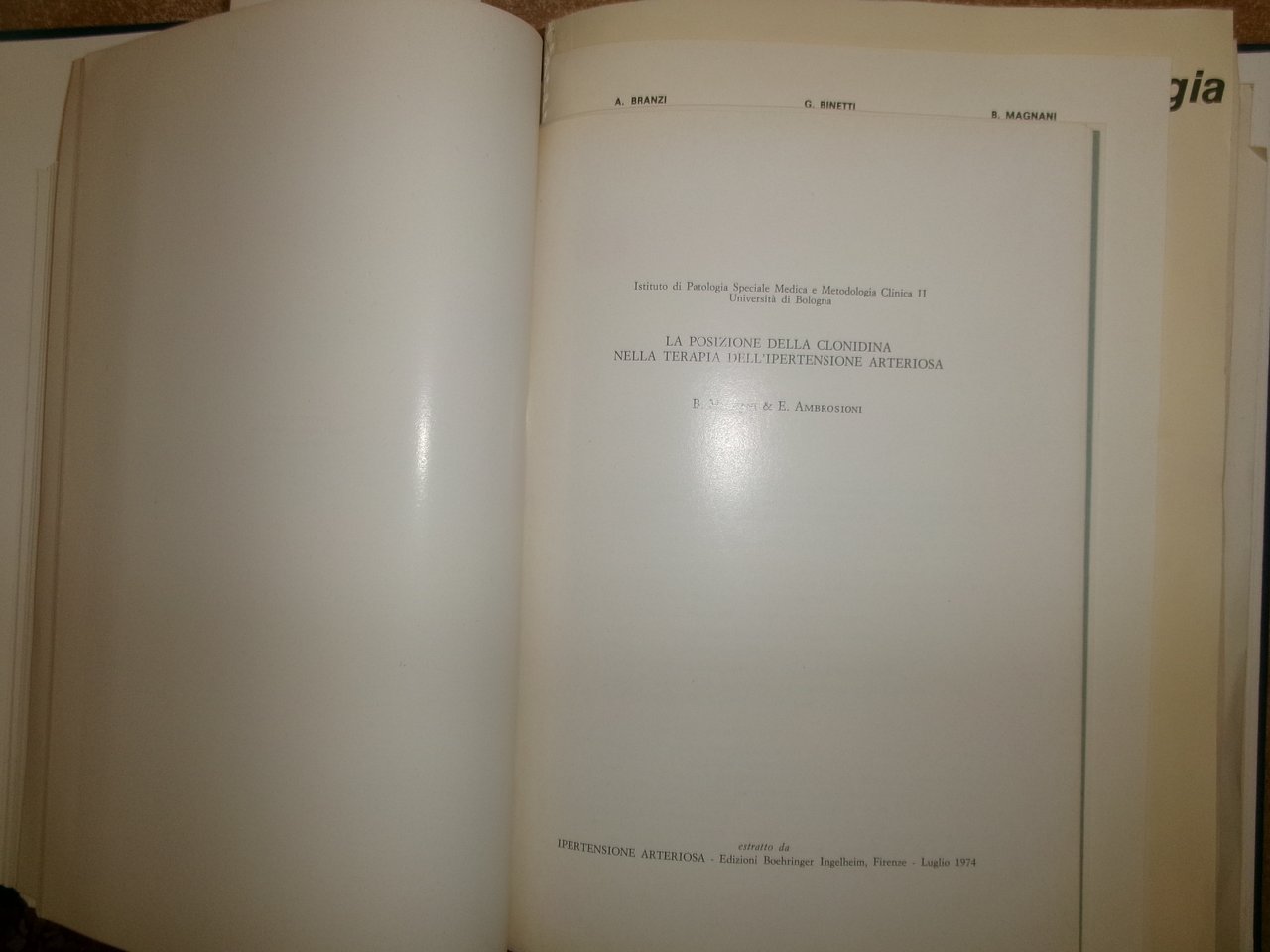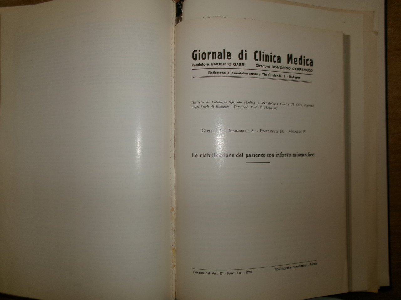Dott. MAGNANI.AA. VV. Istituto di Cardiologia Pubblicazioni Scientifiche 1974-76
