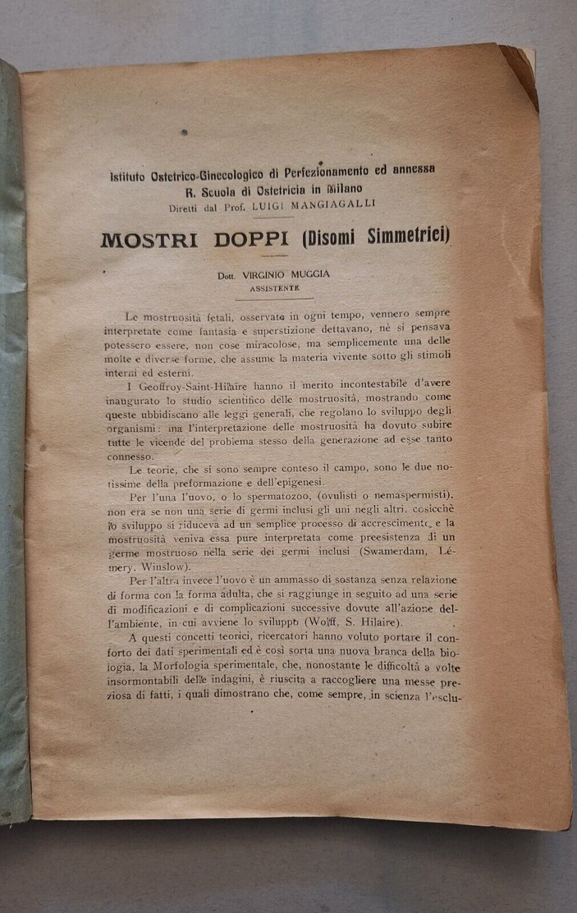 DOTT. VIRGINIO MUGGIA MOSTRI DOPPI DISOMI SIMMETRICI ED. COGLIATI 1919