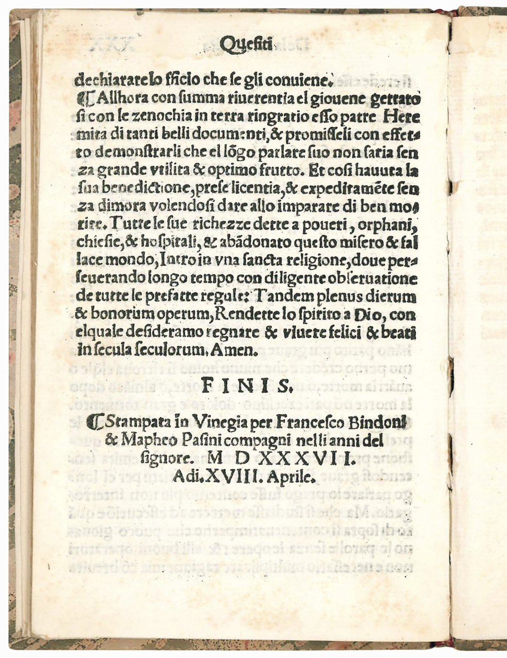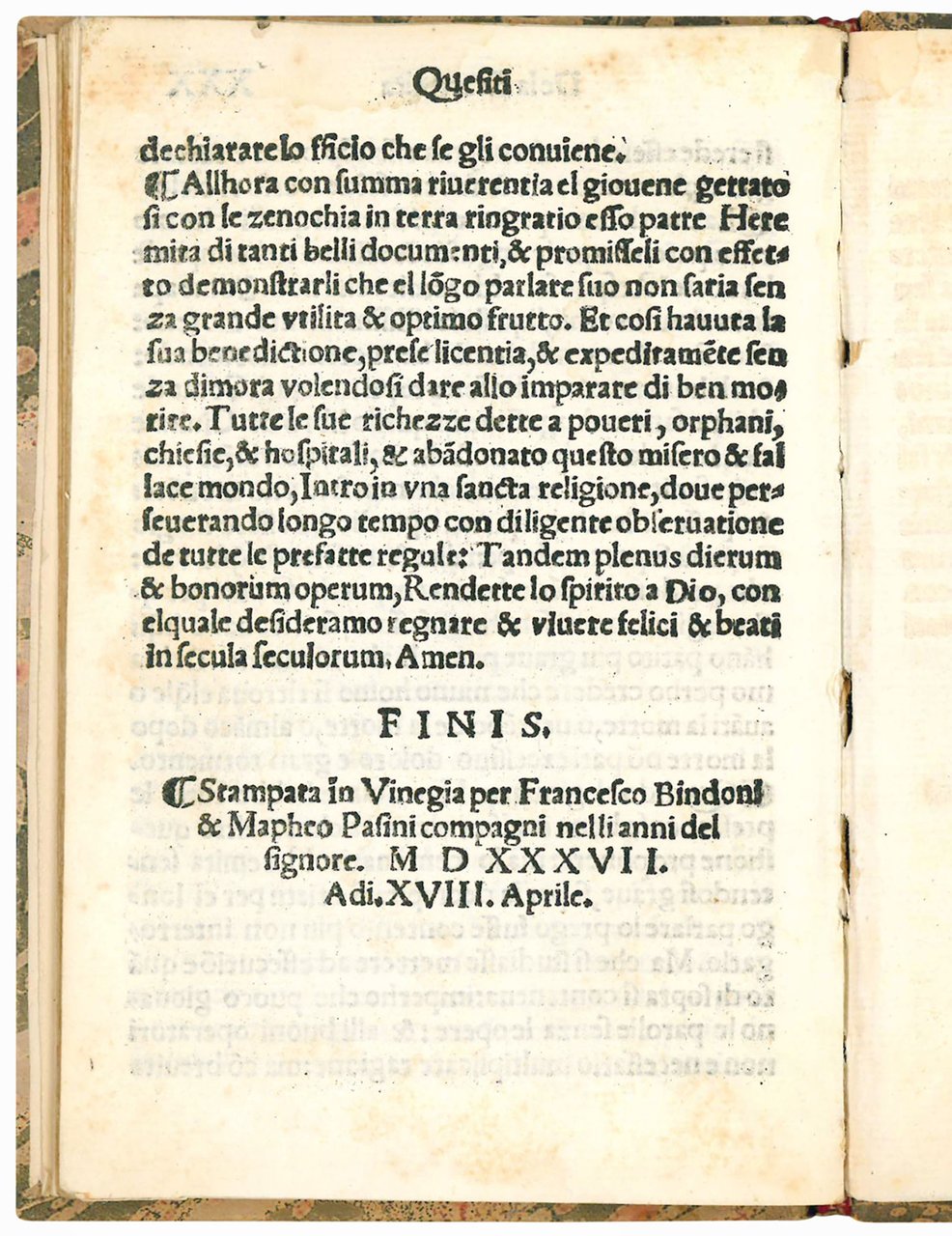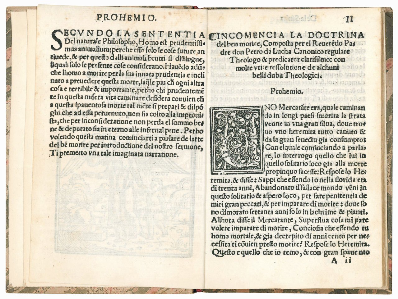 Dottrina del ben morire: Composta per il Reverendo Padre don Petro da Lucha canonico regulare Theologo, et p[re]dicator clarissimo. Con molte utile resolutione di alcuni belli dubii theologici. Ars bene moriendi. Colophon: Stampata in Vinegia per Francesco Bindoni & Mapheo Pasini compagni nelli anni del signore MDXXXVII. Adi. XVIII Aprile