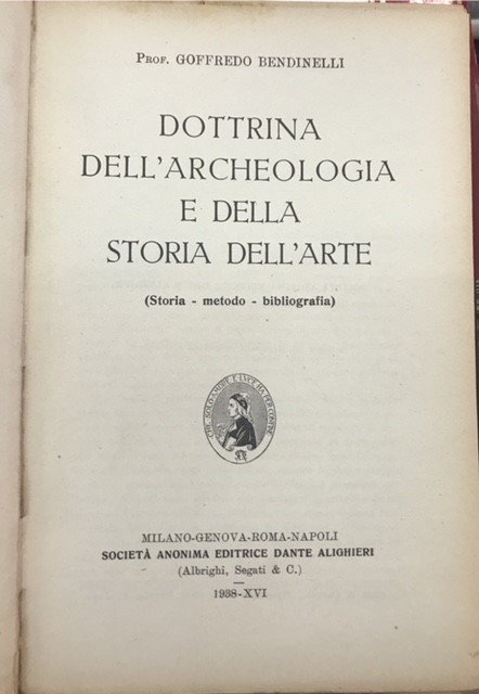 DOTTRINA DELL'ARCHEOLOGIA E DELLA STORIA DELL'ARTE (Storia-metodo-bibliografia).