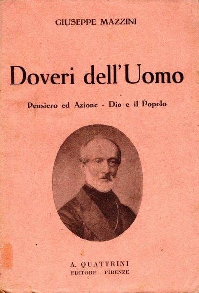 Doveri dell'Uomo, prima edizione 1922, pp. 107, formato 11 x 16.<BR>Copertina morbida di colore arancione con piccola illustrazione al centro del piatto anteriore e titoli in nero. Volume intonso. <BR>All'interno presente una scritta a penna. Altrimenti in ottime condizioni.