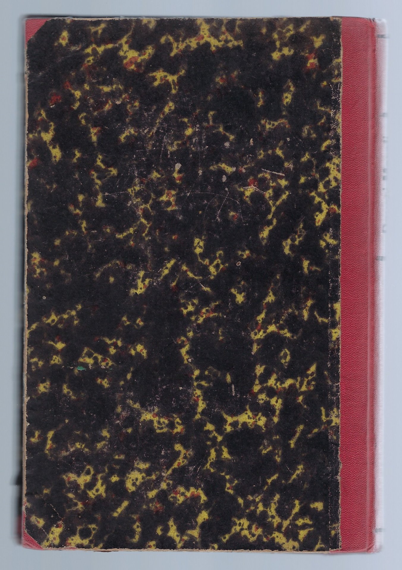 Cartonato editoriale marmorato, con titoli al dorso, su tela rossa.