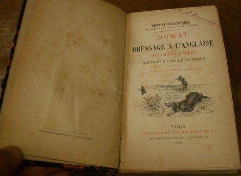 Volume in 12 legato in mezza pelle, titolo al dorso, sguardie, occhiello, frontespizio con vignetta incisa (firma), dedicatoria, 352 pp., 24 illustrazioni a piena pagina nel testo. Opera sull'addestramento dei cani da ferma, che descrive in modo particolare il metodo inglese rispetto a quello francese. Abbellita dalle piacevoli incisioni inserite n.t. In bello stato di conservazione, legatura un po lenta.