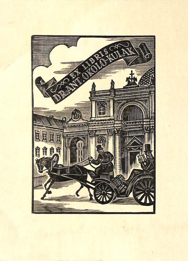 EX LIBRIS,XILOGRAFIA ORIGINALE DR.ANT.OKOLO-KULAK, Bois-Holc Dimensioni: 12 x 8,8 cm  Perfetto stato di conservazione generale