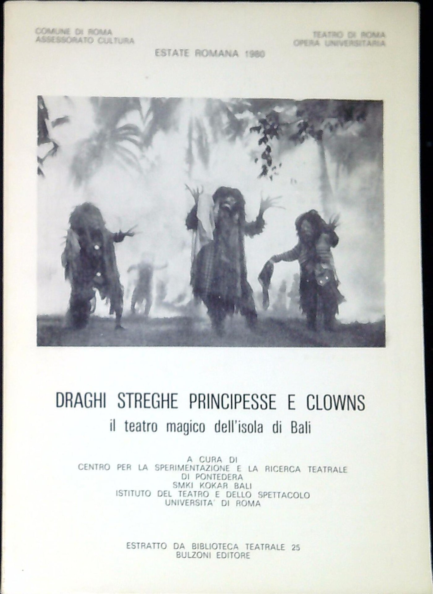 Draghi, streghe, principesse e clowns : il teatro magico dell'isola di Bali. Roma, Bulzoni 1980, 87 p. ; 21 cm (66458)