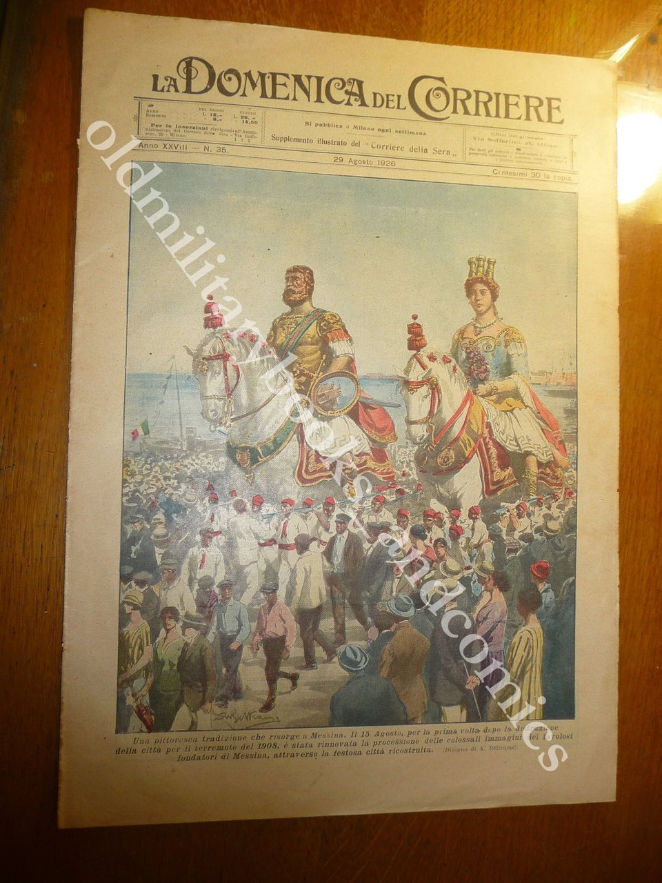 COPERTINA: Una pittoresca tradizione che risorge a Messina. Il 15 Agosto, per la prima volta dopo la distruzione della città per il terremoto del 1908, è stata rinnovata la processione delle colossali immagini dei favolosi fondatori di Messina, attraverso la festosa città ricostruita.