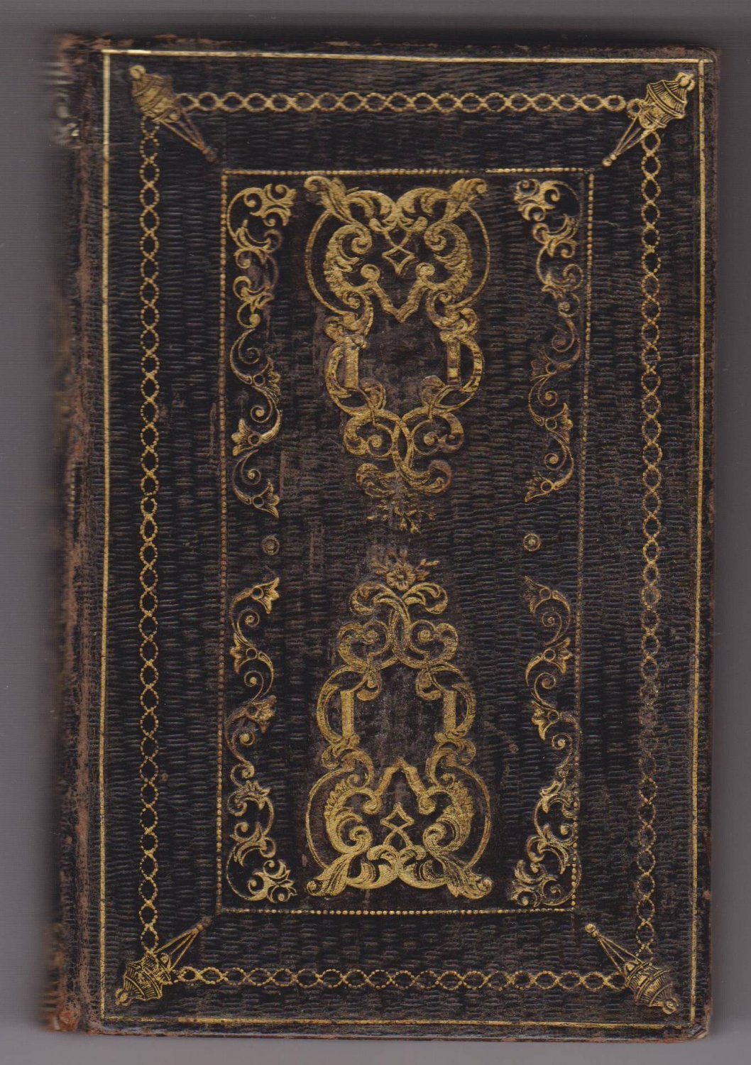 - Original-Leder mit goldgprägtem Rückentitel, Rücken mit goldgeprägten floralen Motiven geschmückt. Dreifach gerahmte goldgeprägte Verzierung beider Deckel mit floralen Elementen, goldfarbene extravagant gemusterte dicke Vorsatzpapiere und Rundumgoldschnitt.