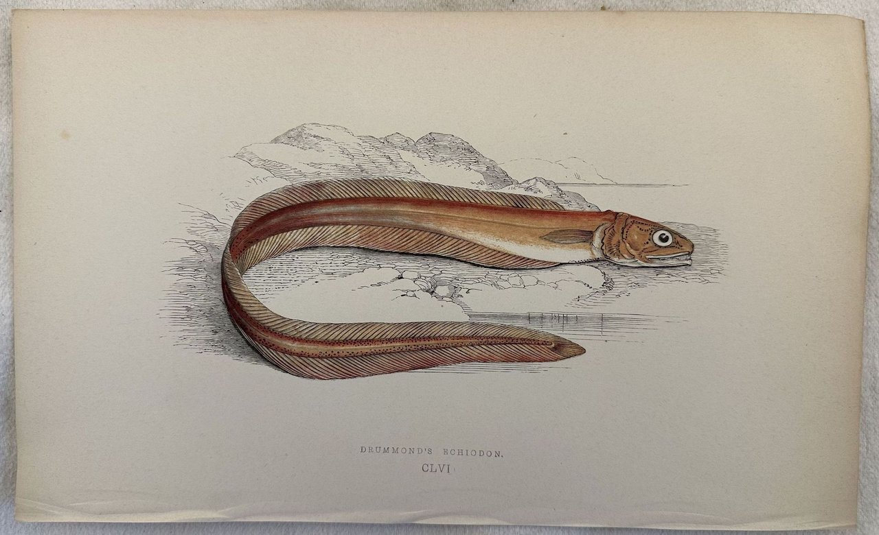 TECNICA: Cromolitografia DIMENSIONI FOGLIO: cm 25x15,2 DIMENSIONI INCISIONE: cm 16,5x8 EPOCA: 1865 Cromolitografia tratta dall'imponente opera di Jonathan Couch "The history of the fishes of the british Islands" pubblicata da Groombridge and Sons nel 1865 sui pesci delle Isole britanniche e non solo.<BR>Le specie sono molto curate nei particolari e nella colorazione.<BR>In ottime condizioni.