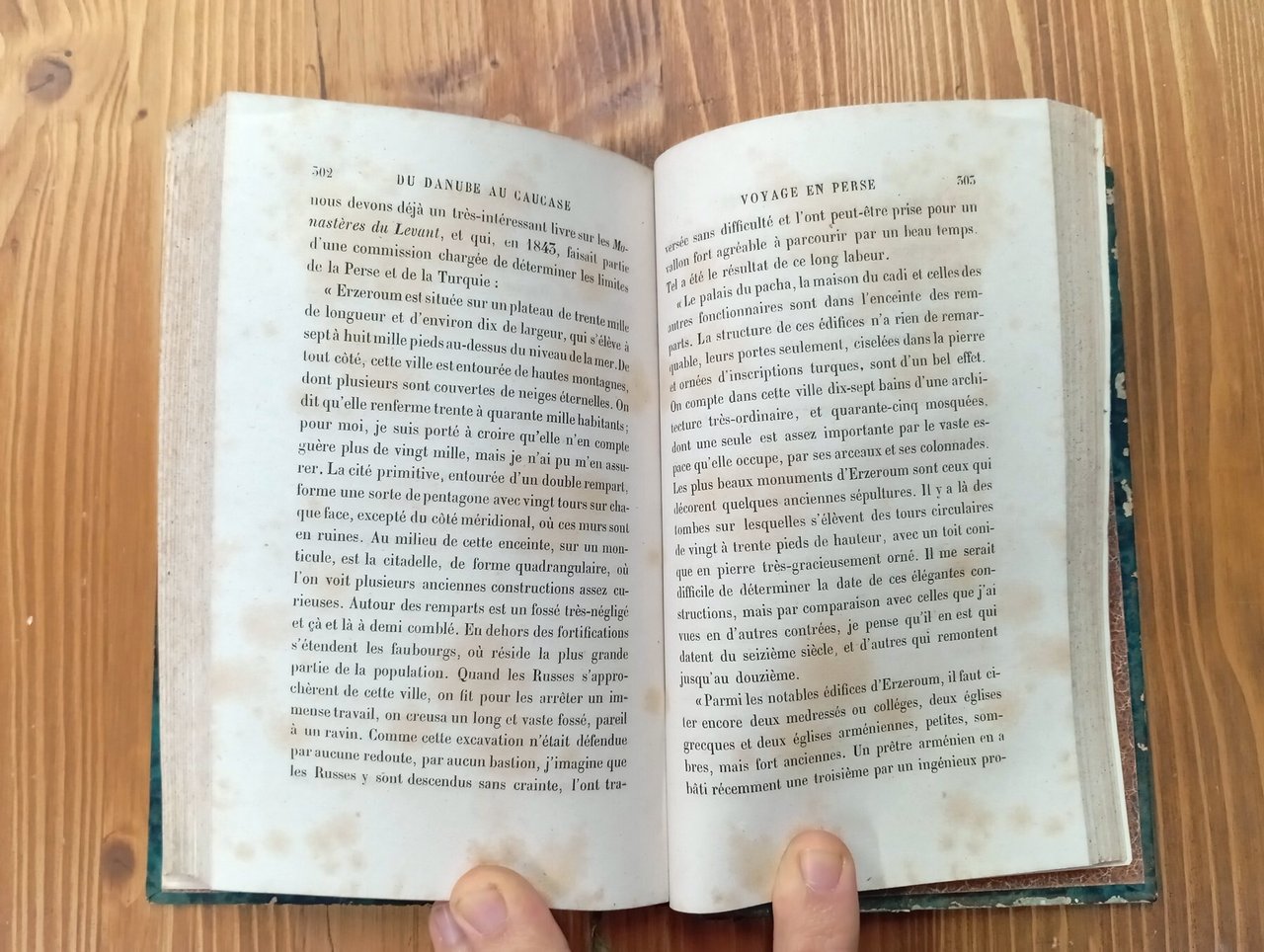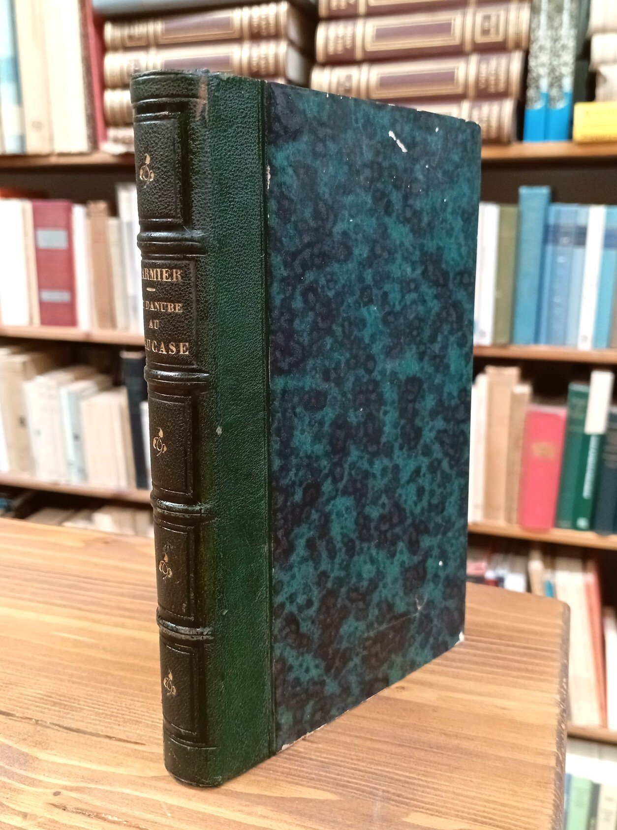 Prima e unica edizione originale francese - Volume rilegato in mezza pelle verde con titolo in oro al dorso, 385 pagine. Diffuse ma perlopiù tenui fioriture alle carte, peraltro paginazione compatta e godibile, legature ben salde; nel complesso ottimo esemplare di un testo non comune -- Xavier Marmier fu autore non solo di diari di viaggio, ma anche di traduzioni, poesie e romanzi, ma soprattutto ha contribuito a far conoscere meglio in Francia la letteratura scandinava e germanica. I suoi viaggi e i suoi libri lo hanno portato a contatto con molte teste coronate ed è molto ammirato nei salotti della capitale francese. Secondo il suo biografo Camille Aymonier, Marmier fu più viaggiatore e critico che scrittore e poeta, nonostante la sua abbondante produzione. INDICE / TABLE DES MATIERES: Traditions du Danube - Les sièges de Vienne - Moldavie et Valachie - Les premiers voyageurs en Palestine - Les légendes bibliques des musulmans - Voyage en Perse - Le pays des cosaques