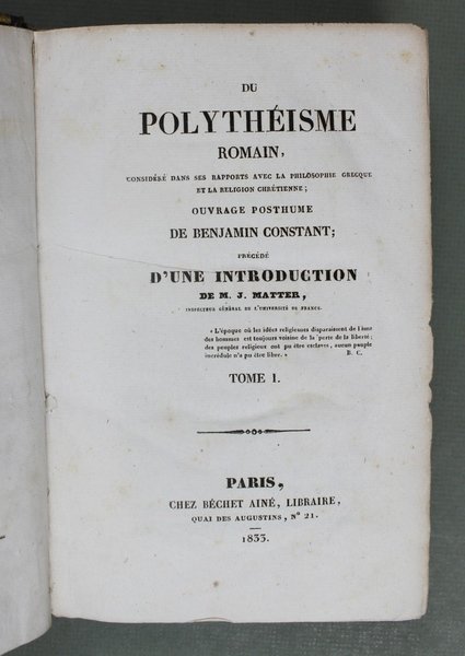Du polytheisme romain consid‚r‚ dans ses rapports avec la philosophie grecque et la religion chr‚tienne.