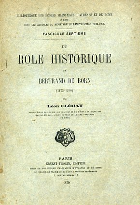 Du role historique de Bertrand de Born (1175 -1200). Bibliothèque des Écoles Françaises d'Athènes et de Rome publiée sous les auspices du Ministère de l'Instruction Publique