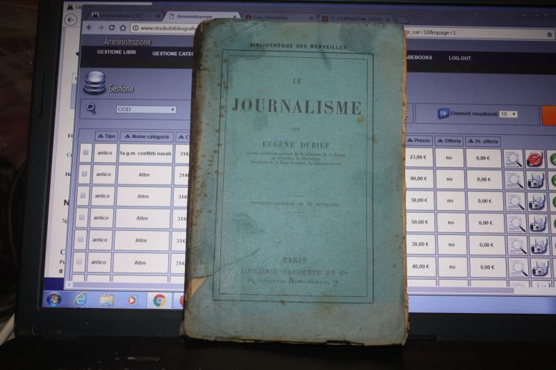 COD 3147, , DUBIEF (EUGÈNE), LE JOURNALISME., A, PARIS, HACHETTE, 1892 Hachette & Cie, Paris 1892, 11,5x18cm, relié. - First Edition. Bound in completo editor di cartone rosso torna con quattro nervi decorati con scatole d'oro. Prenota decorato con 36 miniature. Storia Deu giornalismo, personale, stampa francese ed estera, l'influenza sociale . Bel e il lavoro interessante. - [FRENCH VERSION FOLLOWS] Edition originale. Reliure en plein cartonnage rouge de l'éditeur, dos à quatre nerfs orné de caissons dorés. Ouvrage orné de 36 vignettes. Histoire deu journalisme, le personnel, la presse française et étrangère, l'influence sociale. Bel et intéressant ouvrage., ESEMPLARE CON DORSETTO DANNEGGIATO