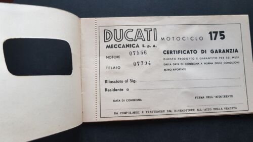 Ducati modelli 175 libretto tessera garanzia originale no depliant brochure