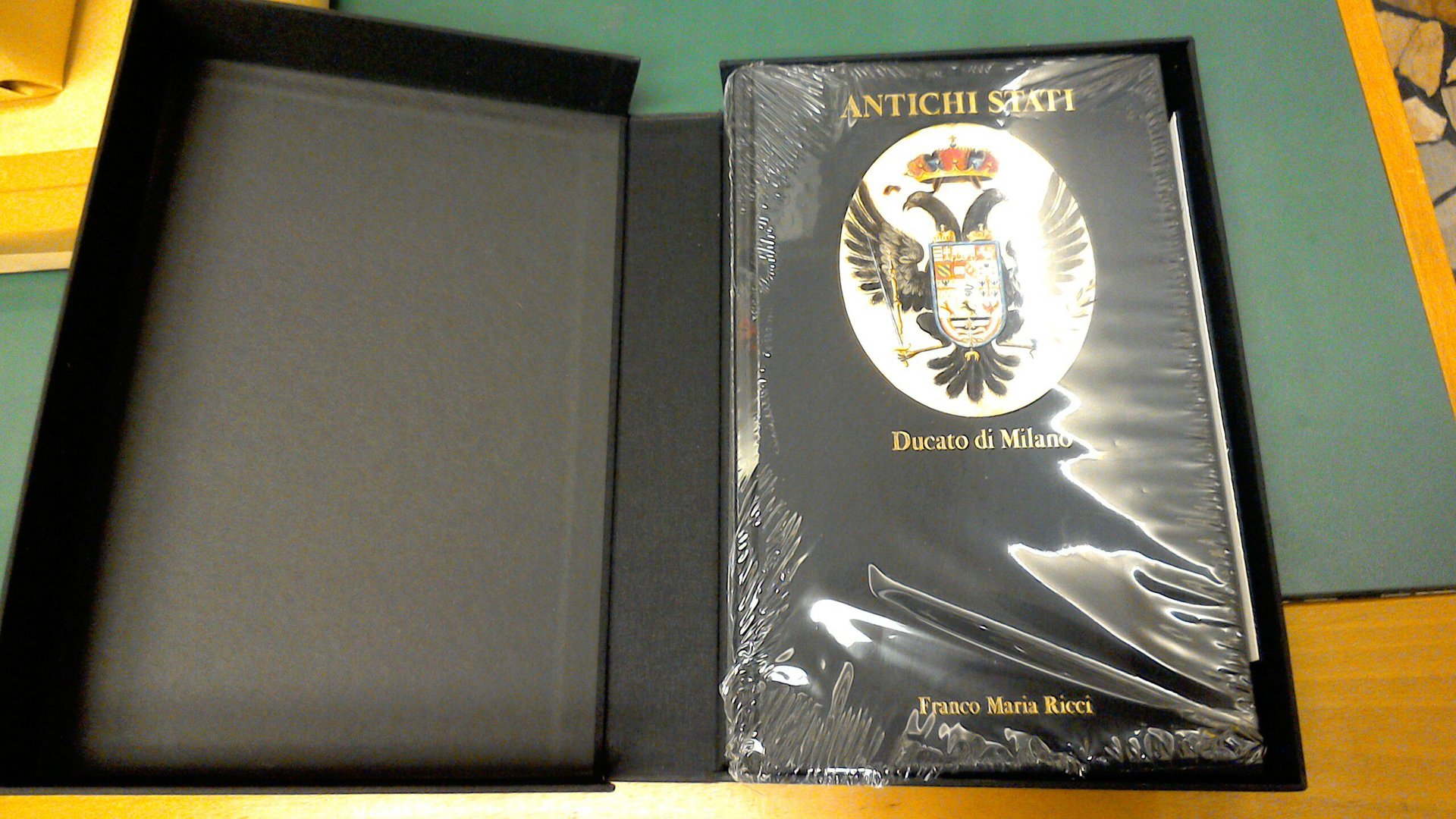 Condizioni: molto buono ( lievi tracce di usura sul cofanetto, libro ancora nel cellophane )