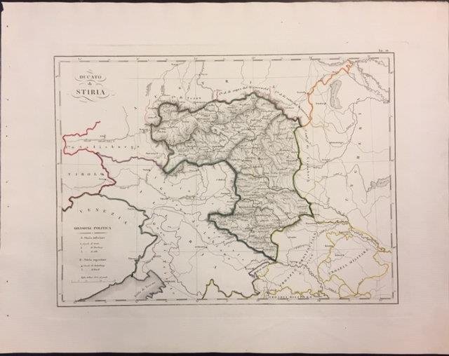 DUCATO DI STIRIA. Carta tratta da "Atlante di Geografia moderna" per uso dei Ginnasj del Regno Lombardo - Veneto, ricavato e tradotto in italiano dall'originale di Vienna dall'Ingegnere Giovanni Marieni, inciso per cura dell'Imperiale Regia Stamperia sotto bl'ispezione del Sig. A. Campana, . Direttore dell'Imperiale e Regio Istituto Geografico Militare.