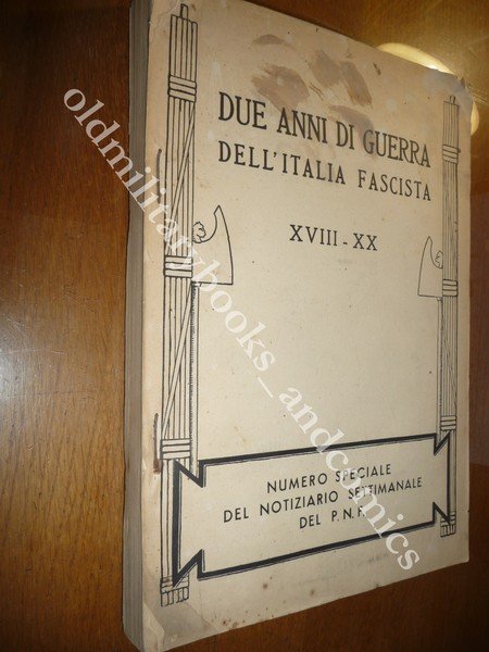 DESCRIZIONE: Numero Speciale del Notiziario Settimanale del P.N.F. Roma 1942 br. ed. con spillette, pp. 171 con num. ill. e mappe n.t. in 4°. Raccolta di fogli ciclostilati e spillati, stampati solo nel recto, con indice sommario a pag. 2 Dall'indice : Ragioni storiche e politiche della Guerra- il Partito in guerra - Fronte economico e sociale - Lo Spazio Vitale dell'Italia e la Civilta' italiana nel Mondo- La Parola del Duce. CONDIZIONI: Discrete, spillette arrugginite, macchie alla cop. e ultima pag. staccata, piccola mancanza alla cop. interni ottimi. PESO / WEIGHT: 900 gr. without package