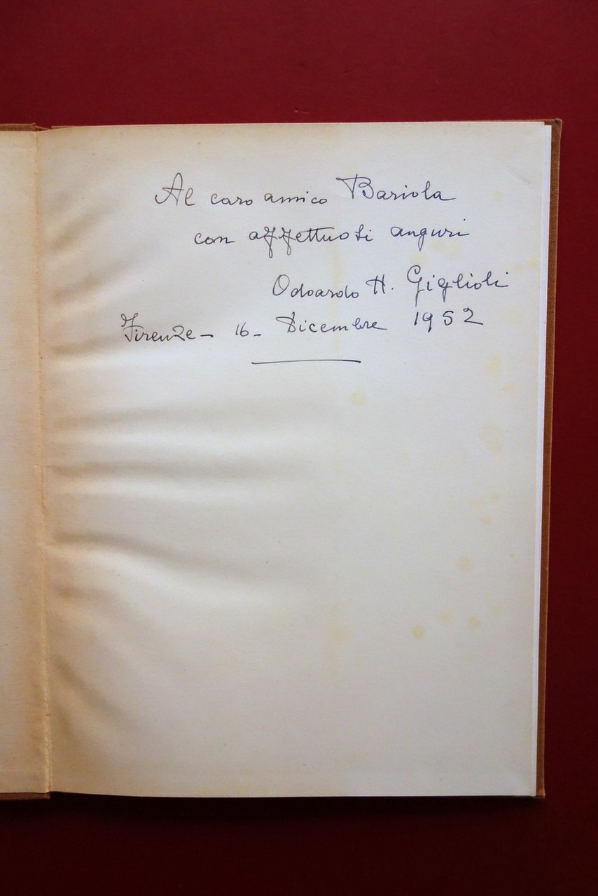 Volume complessivamente in condizioni più che buone, con leggere tracce d'uso; pagine molto ben conservate, qualcuna di testo reca poche leggerissime rimovibili sottolineature a matita, molto probabilmente di pugno del Bariola; risguardi lievemente ingialliti.