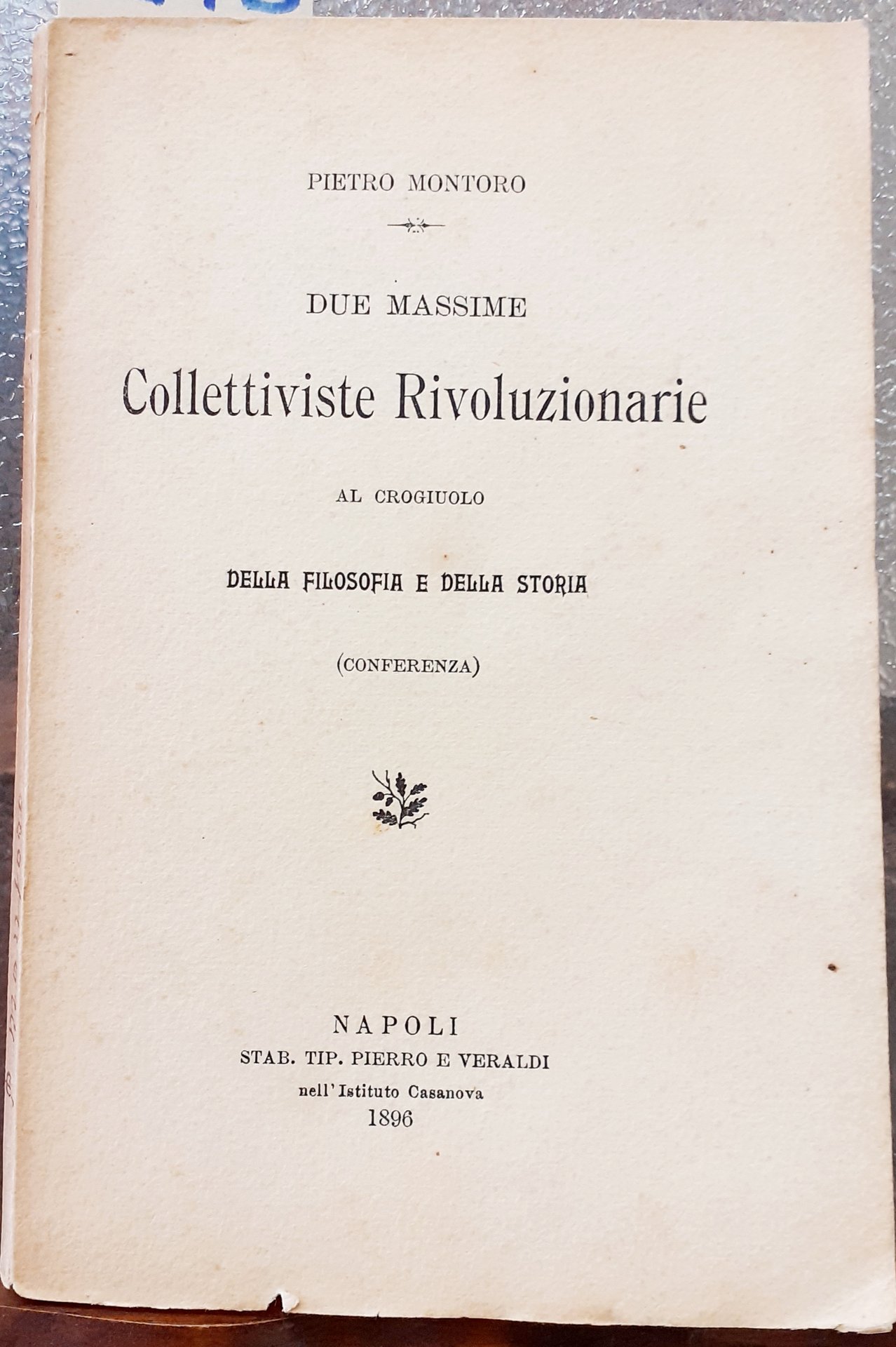 DUE MASSIME COLLETTIVISTE RIVOLUZIONARIE AL CROGIUOLO DELLA FILOSOFIA E DELLA STORIA (Conferenza).,