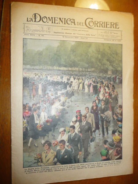 DESCRIZIONE: LA DOMENICA DEL CORRIERE 12 novembre 1933 In copertina: Sagra della nuzialità 2620 matrimoni celebrati a Roma nella chiesa di Santa Maria degli Angeli. Al retro: Due militi entrano in una miniera in Val d'Aosta e salvano dalle esalazioni alcuni minatori CONDIZIONI DELL'OGGETTO: Buone/Ottime senza sovraccoperta azzurrina. PESO/WEIGHT: 54 g without package