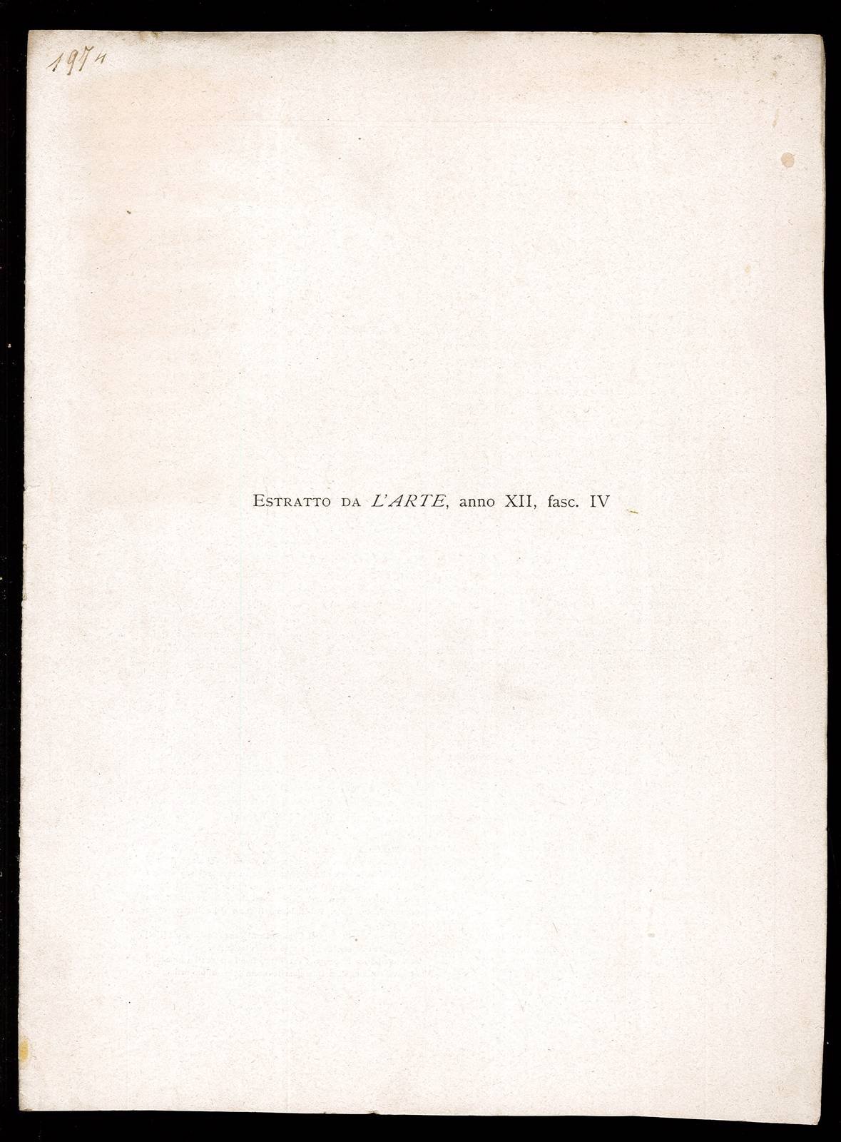 Opuscolo vintage. Estratto da L'Arte, Anno. XII, Fasc. IV. Illustrazioni in bn all'interno del testo. Usura da scaffale. Ordinario segno del tempo.