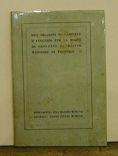 16mo (cm. 16,3), 35(1) pp. Bross. editoriale grigia a stampa nera. Le due orazioni sono precedute da una circolare di E.F. di Savoia, Duca d’Aosta, Comandante della 3.a Armata. Ottimo esemplare. Edizione originale. De Medici, 193; Guabello, 215; Vecchioni, 53.