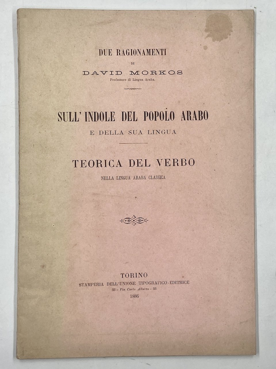 DUE RAGIONAMENTI DI DAVID MORKOS POFESSORE DI LINGUA ARABA. SULL’INDOLE DEL POPOLO ARABO E DELLA SUA LINGUA. TEORICA DEL VERBO NELLA LINGUA ARABA CLASSICA.