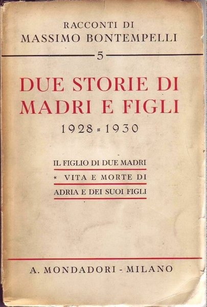 DUE STORIE DI MADRI E FIGLI (1928 - 1930). IL FIGLIO DI DUE MADRI - VITA E MORTE DI ADRIA E DEI SUOI FIGLI