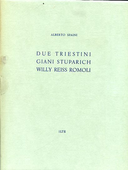 In-4°, pp. 30 nn., cartonatura editoriale con sovraccoperta ripiegata colori verde acqua. Capilettera e finalini elegantemente miniati. Perfetto esemplare conservato entro custodia cartonata impiallacciata in legno di noce con logo editoriale dell'Ilte impresso in oro ai piatti. Unica edizione, impressa in 998 esemplari fuori commercio, curata da F. Postiglione. Commemorazione stesa dal noto germanista Spaini, anch'egli nativo di Trieste. Acclusi un biglietto da visita e un cartoncino con dicitura a stampa: 'Con questa pubblicazione, un gruppo di amici ha voluto ricordare Giani Stuparich e Guglielmo Reiss Romoli, sino alla fine affratellati in una affettuosa amicizia'.