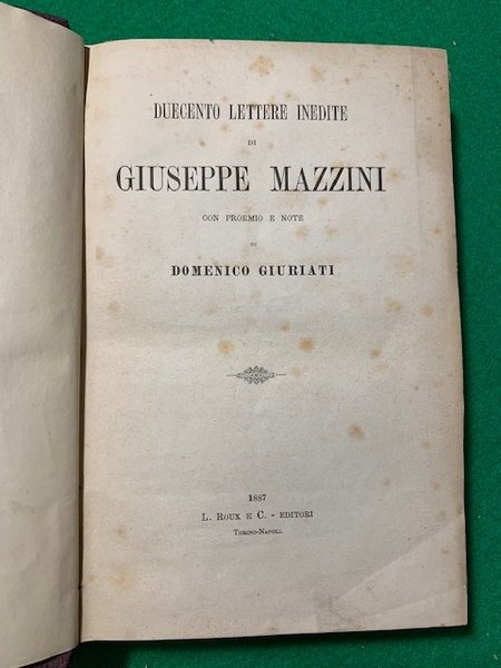 Duecento Lettere Inedite di Giuseppe Mazzini con proemio e note di Domenico Giuriati,