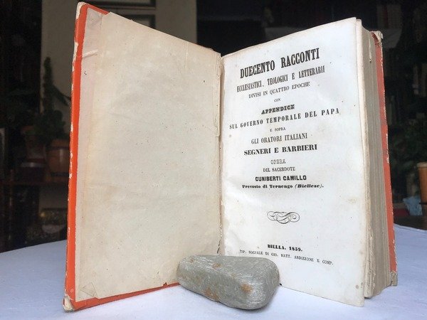 DUECENTO RACCONTI ECCLESIASTICI, TEOLOGICI E LETTERARI divisi in quattro epoche con appendice SUL GOVERNO TEMPORALE DEL PAPA e sopra gli Oratori italiani Segneri e Barbieri. Opera del Sacerdote C.C. prevosto di Ternengo