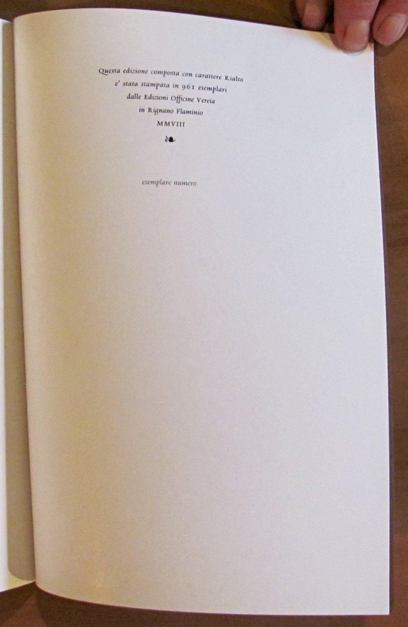 18 illustrazioni in b.n. a piena pagina. Officine Vereia - Rignano Flaminio, 2008. Tiratura Limitata a 961 esemplari. Brossura editoriale. 16,5x23,5; pp.8 di presentazione, 18 di illustrazioni e 16 di Catalogo. Stato di Nuovo. , Ottimo (Fine)