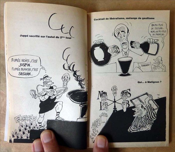 Un volume au format poche de 128 pp.; entièrement illustré de caricatures en noir par Cabu. Couverture illustrée en couleurs. Bel état. Voir photos. Peu fréquent. La cohabitation Chirac-Jospin vue avec férocité.