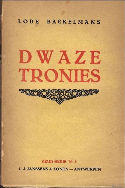 DWAZE TRONIES. ( DE ONBEZONNEN RECHTER. DE NUCHTERE MINNAAR ). ***met opdracht van Lode Baekelmans, gesigneerd !