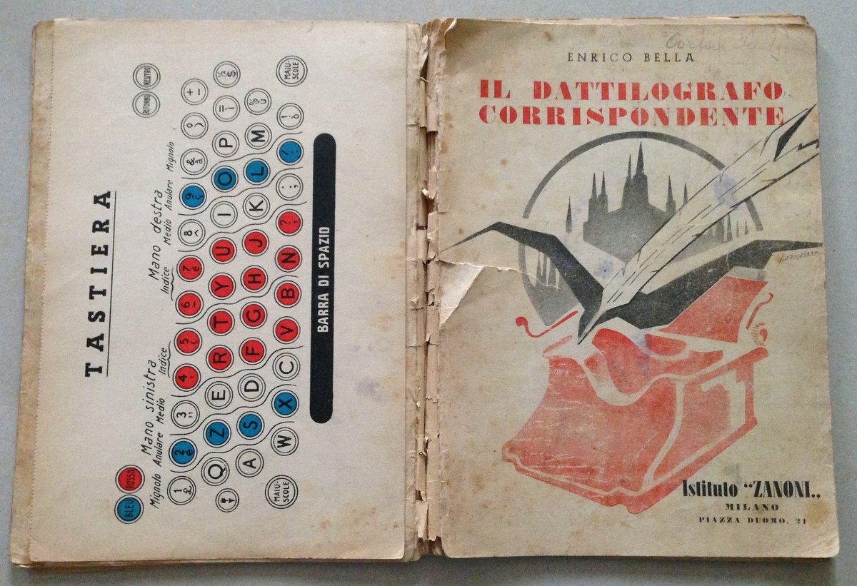 E. Bella, Il dattilografo corrispondente Istituto Zanoni, Milano, 1951; cm. 27,5x19,5; pp. 125; nome ex proprietario al frontespizio; manuale per l'apprendimento della dattilografia estetica e della corrispondenza commerciale italiana; con tavv. a p. pag.; quarta edizione; br. ed. fig. Condizioni di conservazione Esemplare in discreto stato con tracce d'uso e del tempo (vedi foto); esemplare leggermente brunito, sciolto, con strappetti alla brossura e al frontespizio. SETT169.L15482 MT