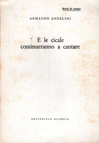 E le cicale continueranno a cantare, senza data, pp. 259, formato 14 x 20.<BR>Copertina morbida di colore bianco con titoli in nero al piatto anteriore e sul dorso. Bozza di stampa. <BR>Fioriture ai piatti e sul dorso, altrimenti in ottime condizioni.