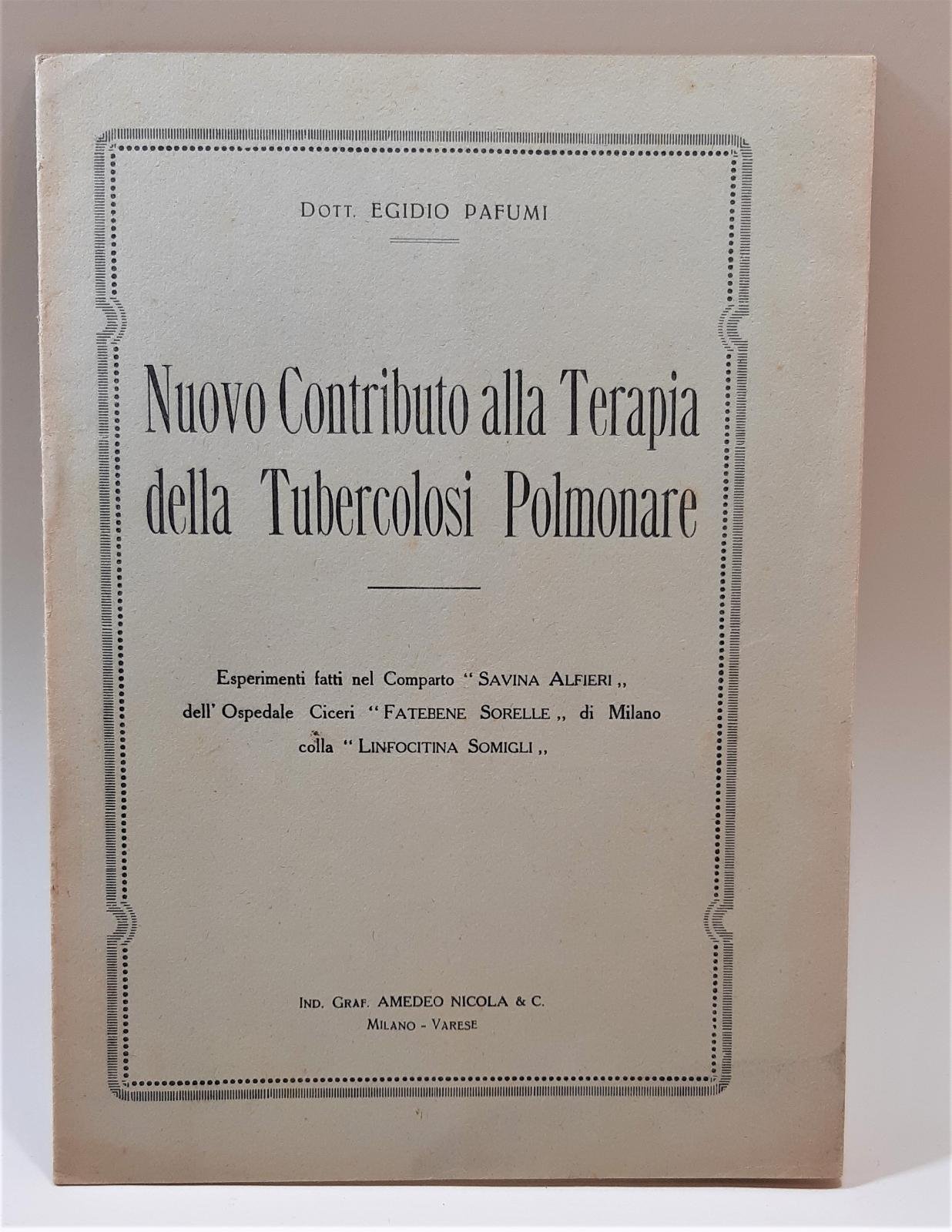 Egidio Pafumi Nuovo contributo alla terapia della tubercolosi polmonare esperimenti fatti nel comparto Savina Alfieri dell'ospedale Ciceri Fatebene Sorelle di Milano con la Linfocitina Somigli
