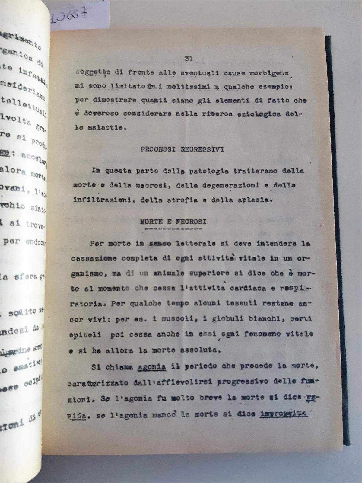 E. Ravenna Patologia Generale veterinaria anni 1924 1925 Torino appunti dattiloscritti