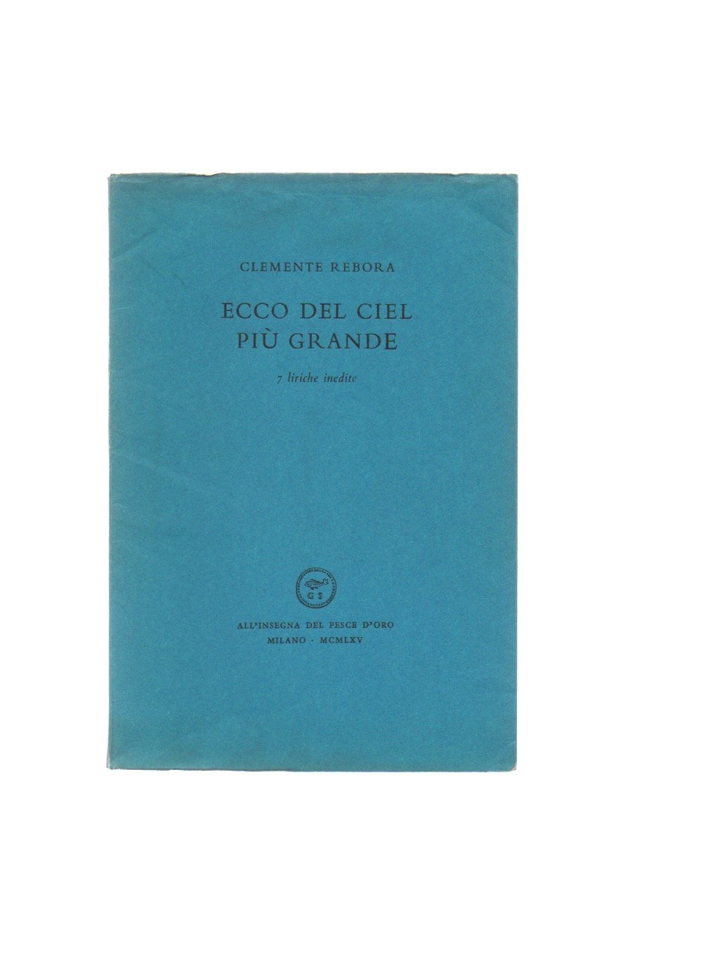 LIBROEdizione originale.Ottimo esemplare. Copia n. 648/100, conserva la fascetta editoriale.Liriche inedite di Clemente Rebora pubblicate da Vanni Scheiwiller a 8 anni dalla morte del poeta e sacerdote milanese.Cicala e Rossi, Bibliografia reboriana, p. 22