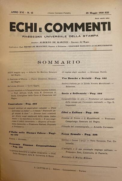 In 4°, brossura originale. Si dispone del n. 15 dell'anno 1935.