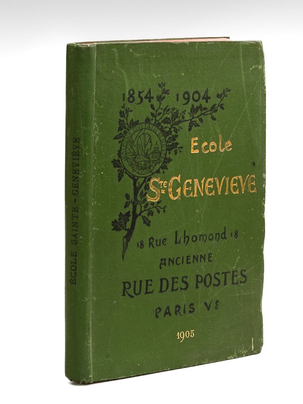 1 vol. in-8 cartonnage éditer pleine percaline verte, Société Anonyme des Ecoles Préparatoires, 1905, 253 pp. Bon état (couv. lég. frottée) pour ce beau livre édité à l'occasion du cinquantenaire de "Ginette", actuellement "Lycée privé Sainte-Geneviève" de Versailles, fondé à Paris par les pères Jésuites en 1854 et qui déménagera à Versailles en 1913.