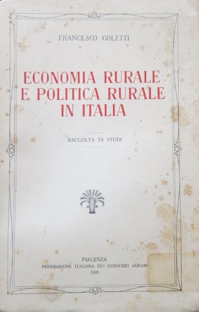 Federazione Italiana dei Consorzi Agrari, Piacenza, 1926. In 8vo, pp. LII, 339 con Indice, bross. edit. in carta. Fioriture ai piatti e ingiallimento dei tagli ma ottima conservazione di tutto il volume per lo più ancora intonso.