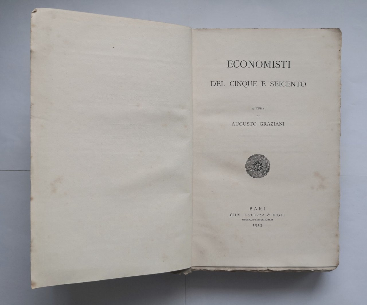 ECONOMISTI DEL CINQUE E SEICENTO di Augusto Graziani 1913 Laterza Libro Italia