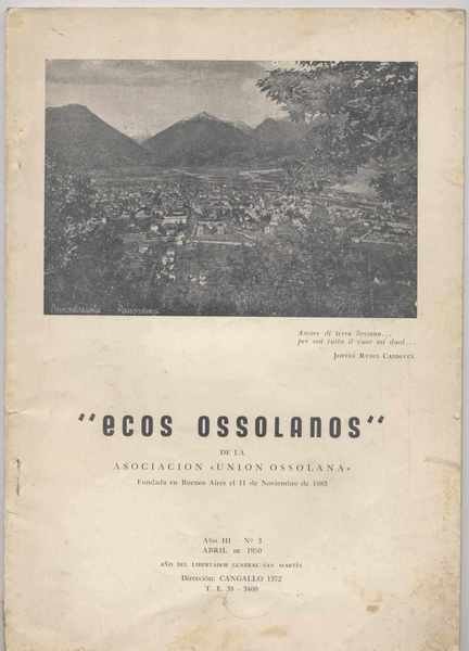 Ecos ossolanos de la asociacion "Union ossolana" Fundada en Buenos Aires el 11 de Novembre de 1883 N. 3 april de 1950