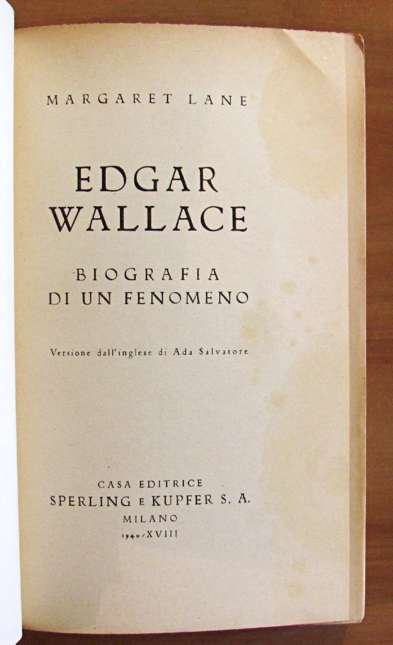 Foto di Wallace in antiporta. Casa Editrice Sperling e Kupfer - Milano, 1940. Brossura editoriale. Intero interamente intonso. 16x24; pp.279. OTTIMO STATO , Ottimo (Fine)