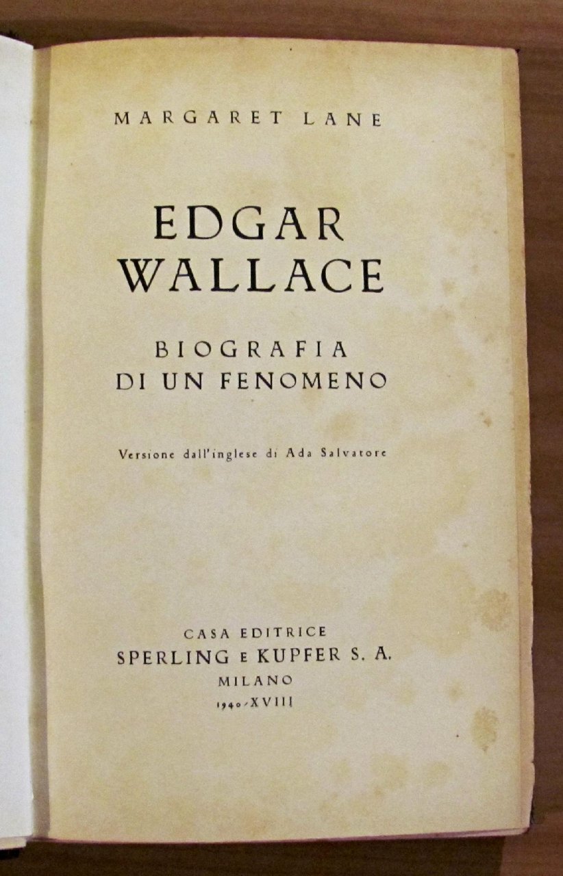 Foto di Wallace in antiporta. Casa Editrice Sperling e Kupfer - Milano, 1940. Rilegatura in mezza pelle coeva con nervi e titoli in oro al dorso e copertine originali conservate all'interno. 15,5x24; pp.279. BUONISSIMO STATO , Ottimo (Fine)